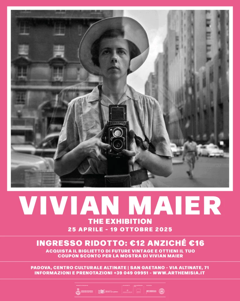 Dal 25 aprile al 19 ottobre 2025 arriva a Padova, al Centro Culturale Altinate | San Gaetano, VIVIAN MAIER. The exhibition, la più grande mostra mai dedicata alla celebre fotografa americana, con più di 200 fotografie a colori e in bianco e nero, scatti iconici, oggetti personali, documenti inediti, sale esperienziali e immersive, registrazioni audio e filmati Super 8, esposti in via eccezionale soltanto per questa retrospettiva.